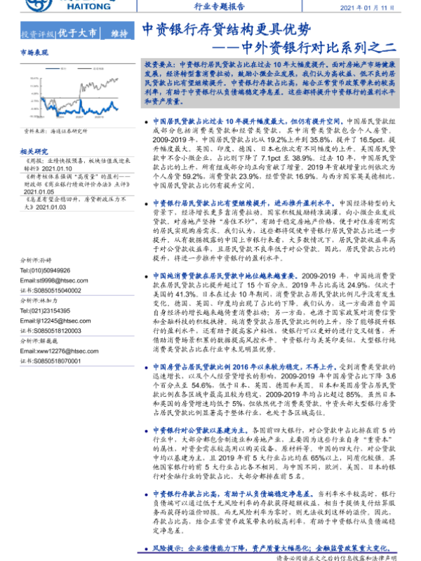 【海通证券】【20210111】中资银行存贷结构更具优势-13页 行业研究