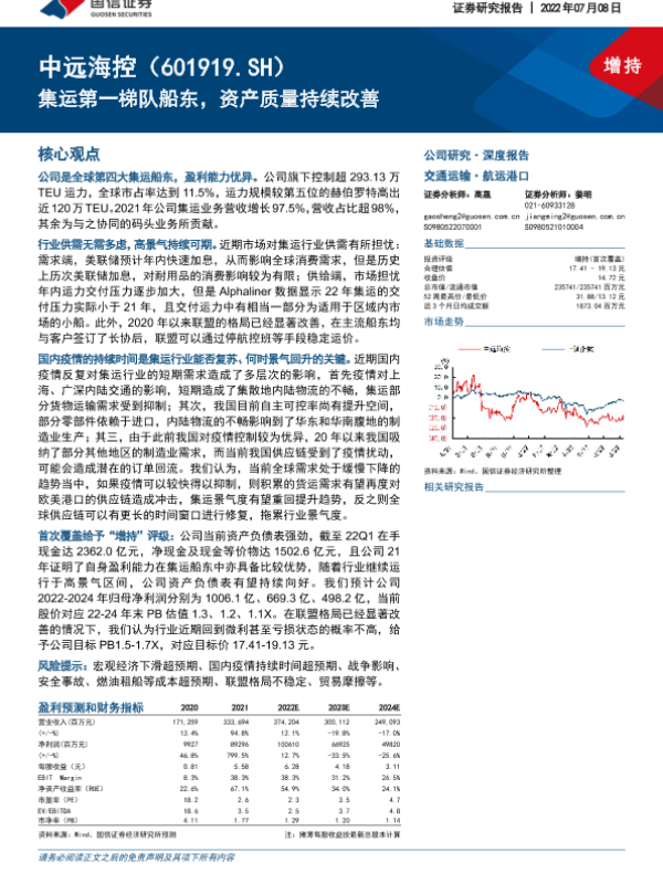 【国信证券】【20220708】中远海控-601919.SH-集运第一梯队船东,资产质量持续改善-28页 行业研究
