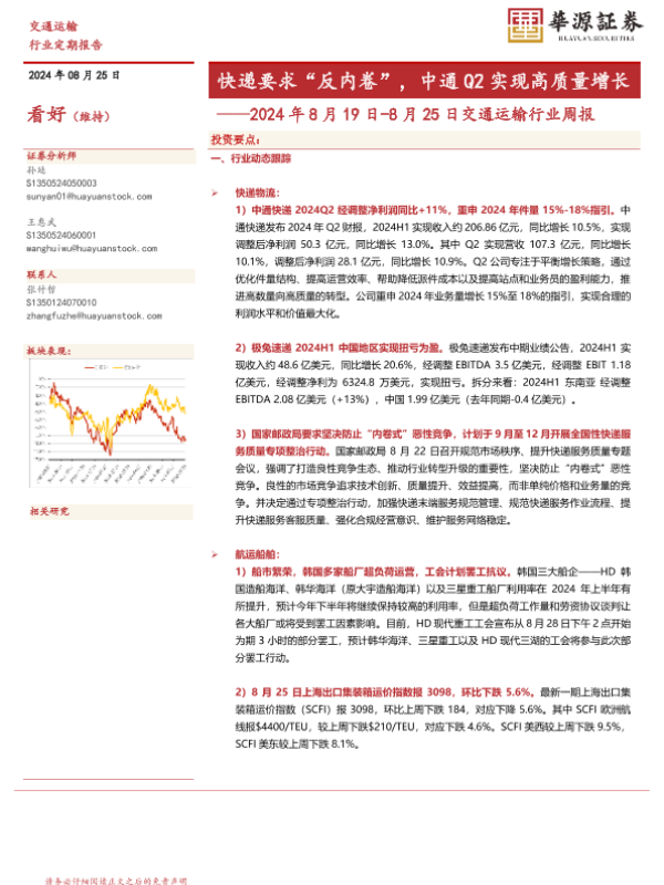 【华源证券】【20240825】交通运输行业周报:快递要求“反内卷”,中通Q2实现高质量增长-15页 行业研究