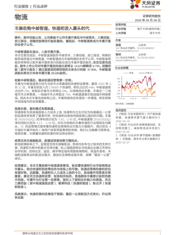【天风证券】【20200506】丰巢收购中邮智递,快递柜进入寡头时代-4页 行业研究