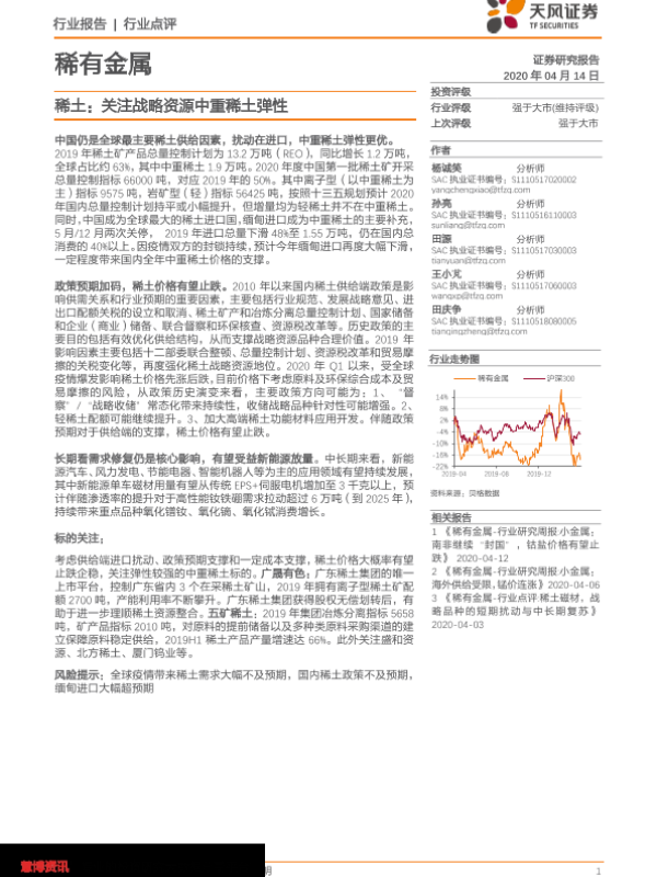 【天风证券】【20200414】稀有金属:稀土:关注战略资源中重稀土弹性-2页 行业研究