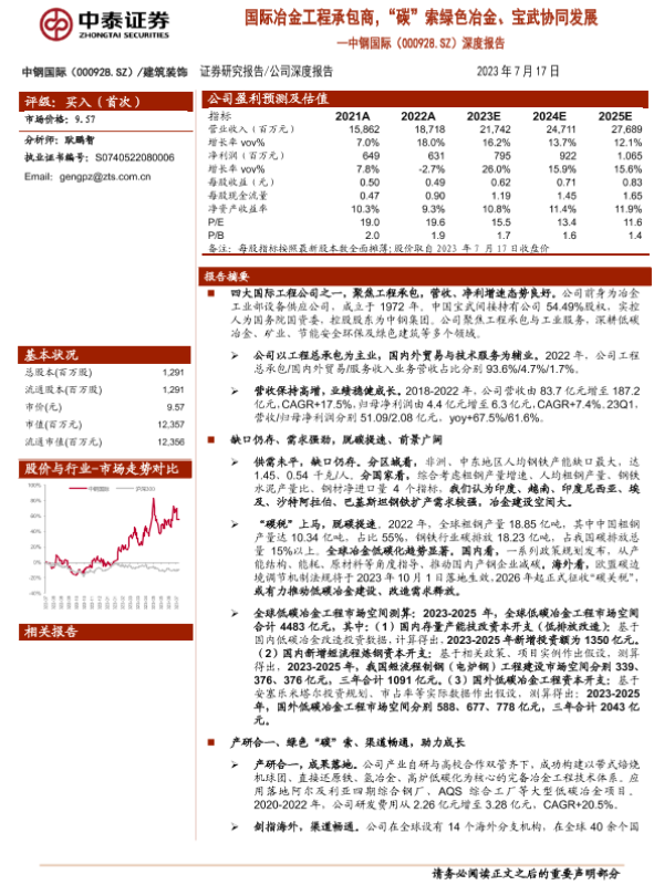 【中泰证券】【20230717】中泰证券-中钢国际-000928.SZ-深度报告:国际冶金工程承包商,“碳”索绿色冶金、宝武协同发展-38页 行业研究