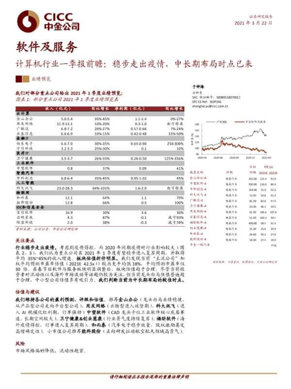 【中金公司】【20210322】计算机行业一季报前瞻:稳步走出疫情,中长期布局时点已来-6页 行业研究