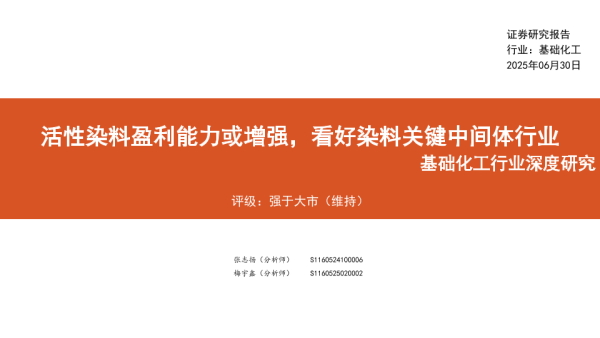 【东方财富证券】【20250630】基础化工行业深度研究:活性染料盈利能力或增强,看好染料关键中间体行业-34页 行业研究
