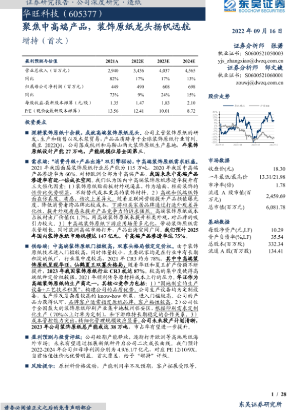 【东方证券】【20230329】华旺科技-605377.SH-中高端装饰原纸龙头企业,产能扩张+业务出海打开成长空间-25页 行业研究