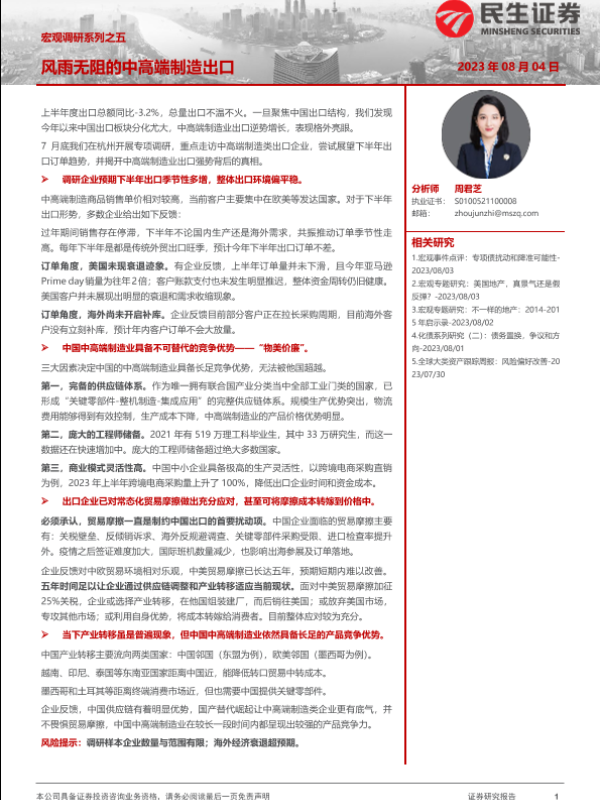 【民生证券】【20230804】宏观调研系列之五:风雨无阻的中高端制造出口-17页 行业研究