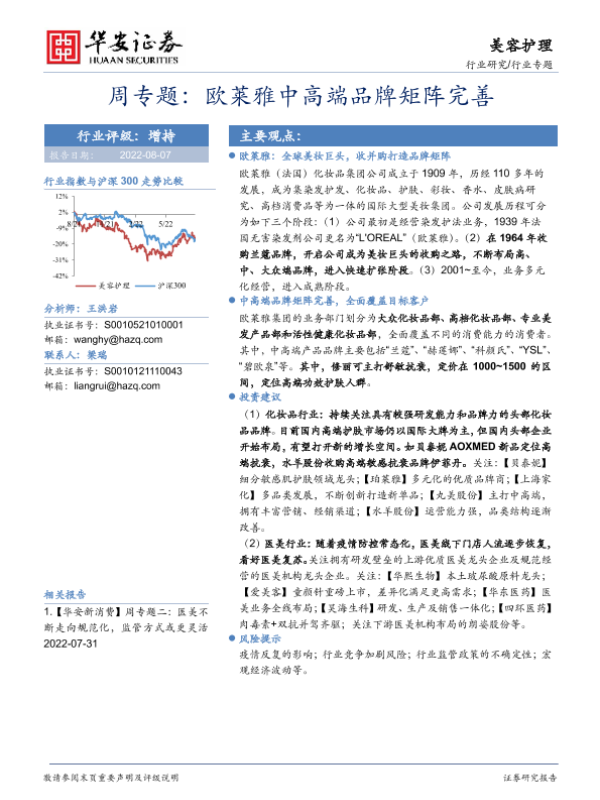 【华安证券】【20220807】美容护理周专题:欧莱雅中高端品牌矩阵完善-10页 行业研究