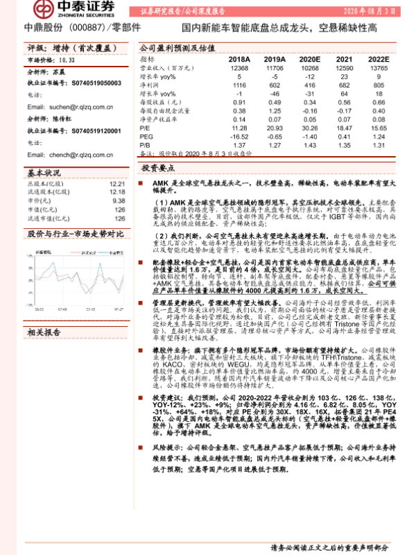 【中泰证券】【20200803】中泰证券-中鼎股份-000887.SZ-国内新能车智能底盘总成龙头,空悬稀缺性高-23页 行业研究