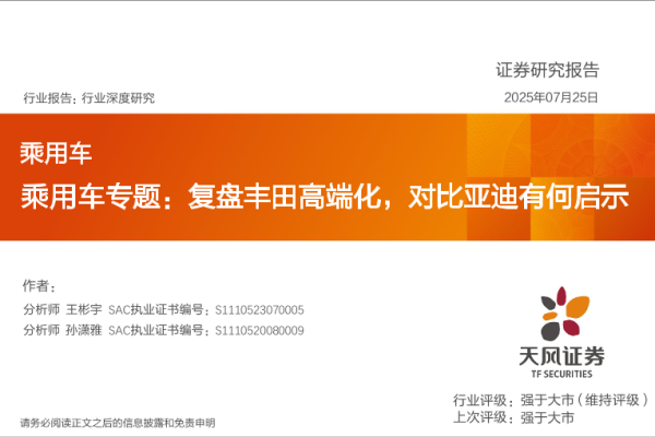 【天风证券】【20250725】乘用车行业专题:复盘丰田高端化,对比亚迪有何启示-24页 证券期货研究报告