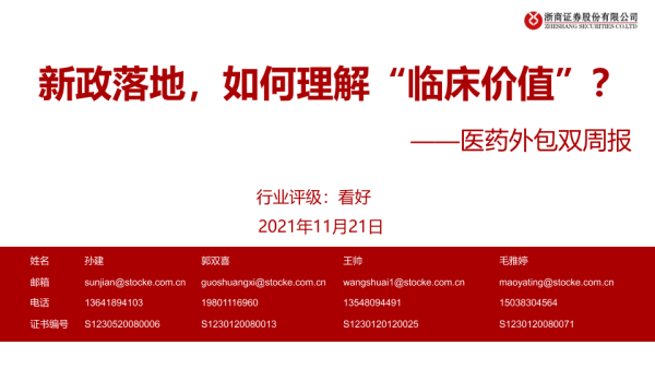 【浙商证券】【20211121】医药外包双周报:新政落地,如何理解“临床价值”?-31页 行业研究