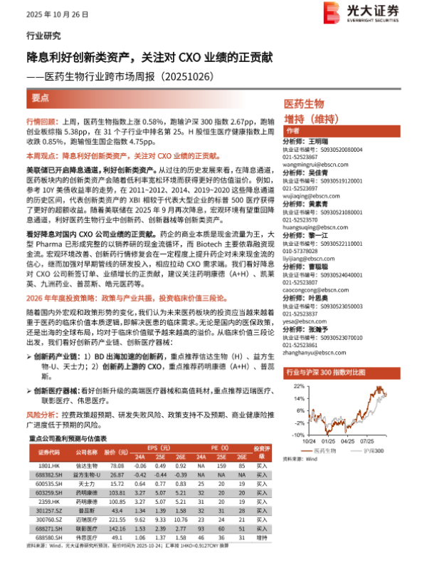 【光大证券】【202510】降息利好创新类资产,关注对 CXO业绩的正贡献-15页 行业研究