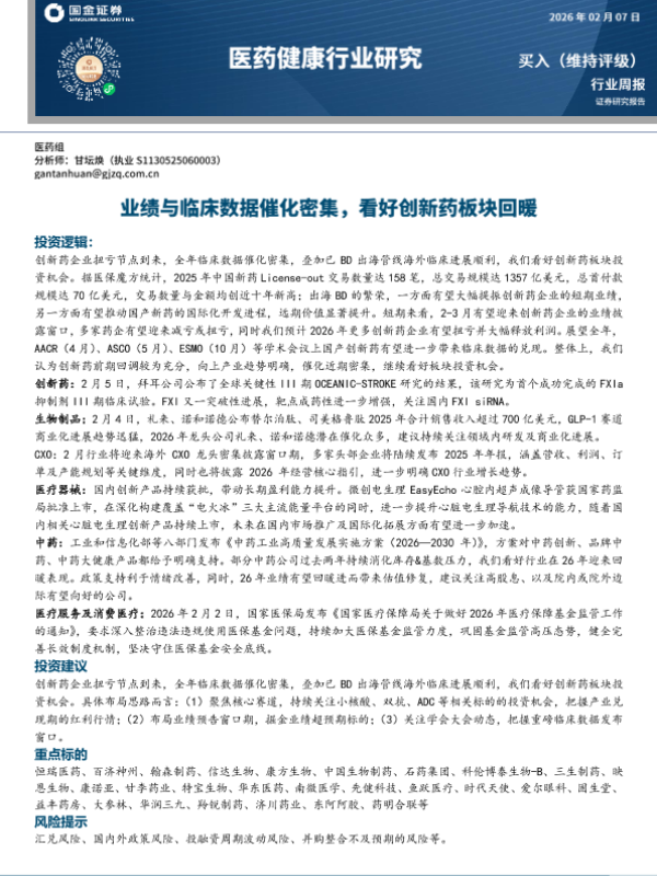 【国金证券】【202602】业绩与临床数据催化密集,看好创新药板块回暖-18页 证券期货研究报告