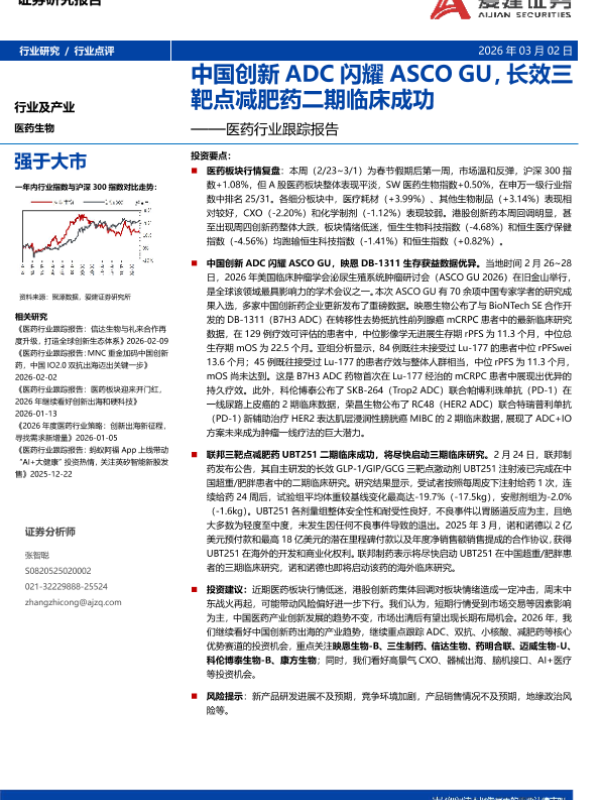 【爱建证券】【202603】医药行业跟踪报告:中国创新ADC闪耀ASCO GU,长效三靶点减肥药二期临床成功-2页 证券期货研究报告
