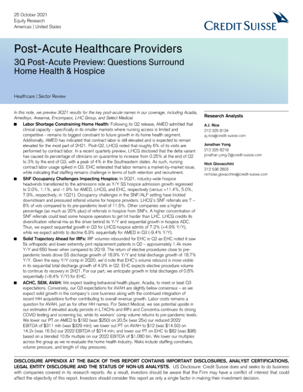【瑞信】【20211025】瑞信-美股医疗保健行业-第三季度急性期后预览:关于家庭健康和临终关怀的问题-38页 行业研究