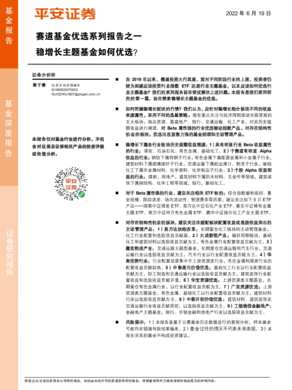 【平安证券】【20220619】赛道基金优选系列报告之一:稳增长主题基金如何优选?-27页 行业研究