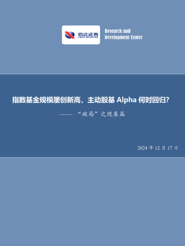 【信达证券】【20241217】“破局”之现象篇:指数基金规模屡创新高,主动股基Alpha何时回归?-25页 行业研究