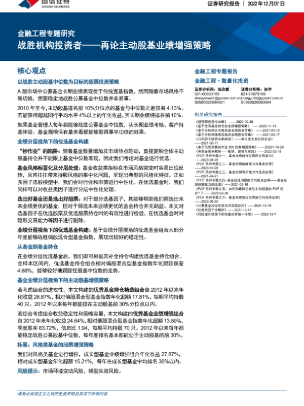 【国信证券】【20221207】金融工程专题研究:战胜机构投资者——再论主动股基业绩增强策略-45页 行业研究