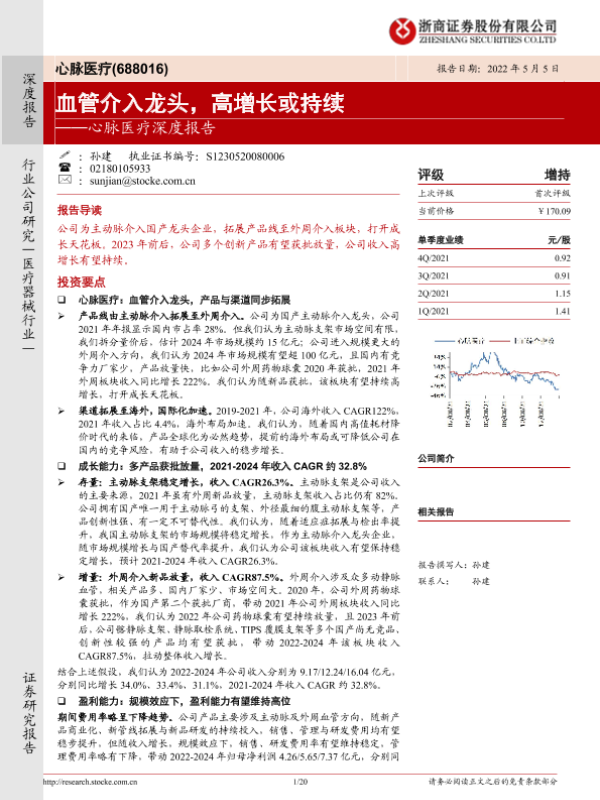 【浙商证券】【20220505】心脉医疗深度报告:血管介入龙头,高增长或持续-20页 行业研究