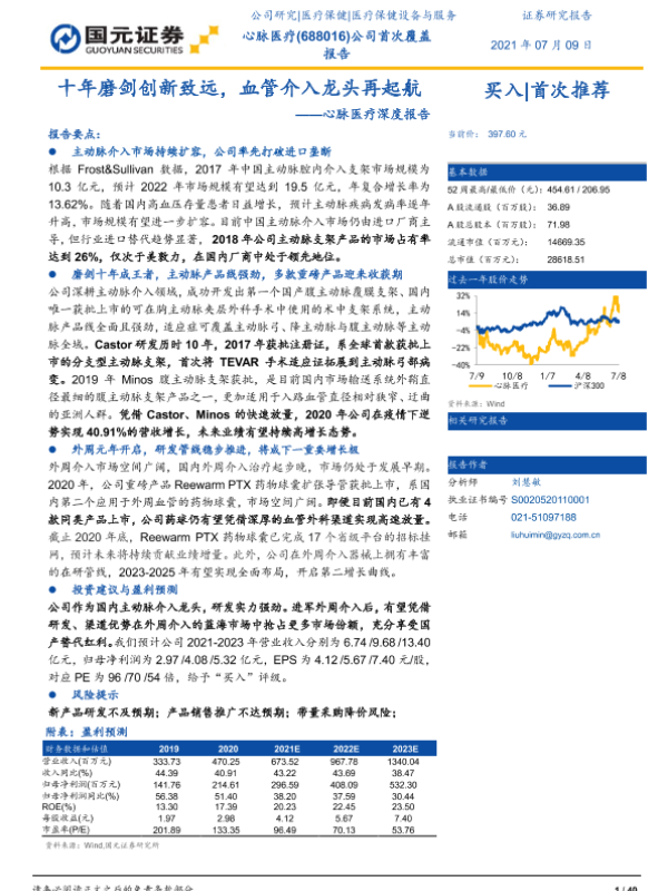 【国元证券】【20210709】心脉医疗深度报告:十年磨剑创新致远,血管介入龙头再起航-40页 公司研究