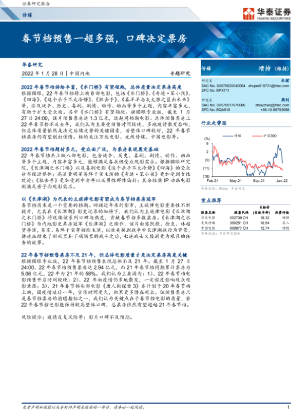 【华泰证券】【20220128】春节档预售一超多强,口碑决定票房-10页 行业研究