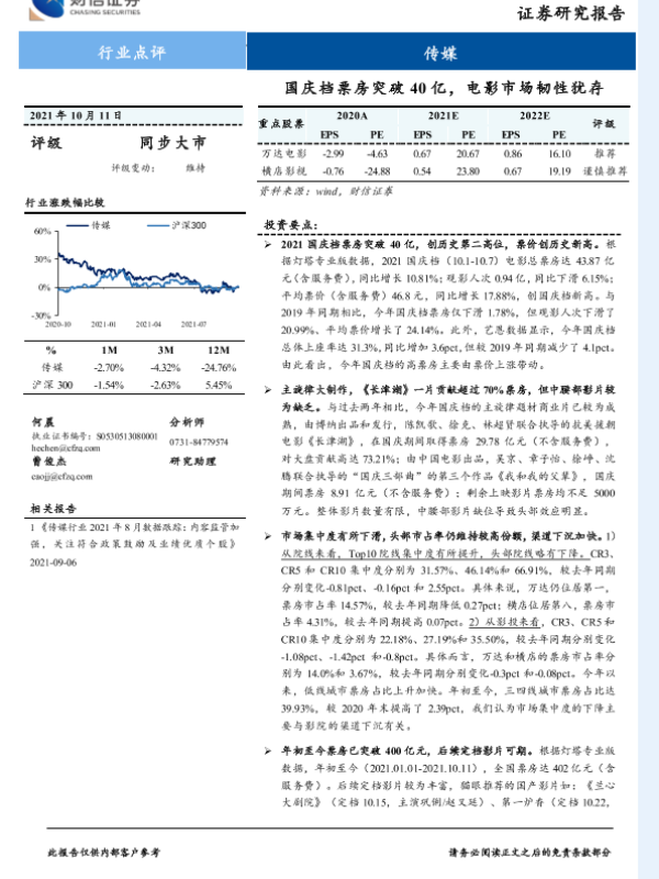 【财信证券】【20211011】国庆档票房突破40亿,电影市场韧性犹存-3页 行业研究