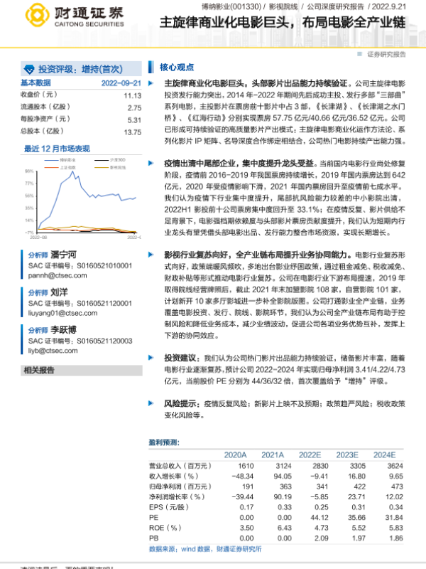 【财通证券】【20220921】主旋律商业化电影巨头,布局电影全产业链-24页 行业研究