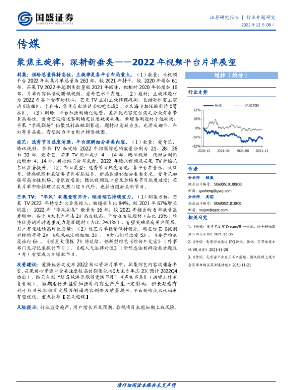 【国盛证券】【20211208】2022年视频平台片单展望-聚焦主旋律,深耕新垂类-12页 行业研究