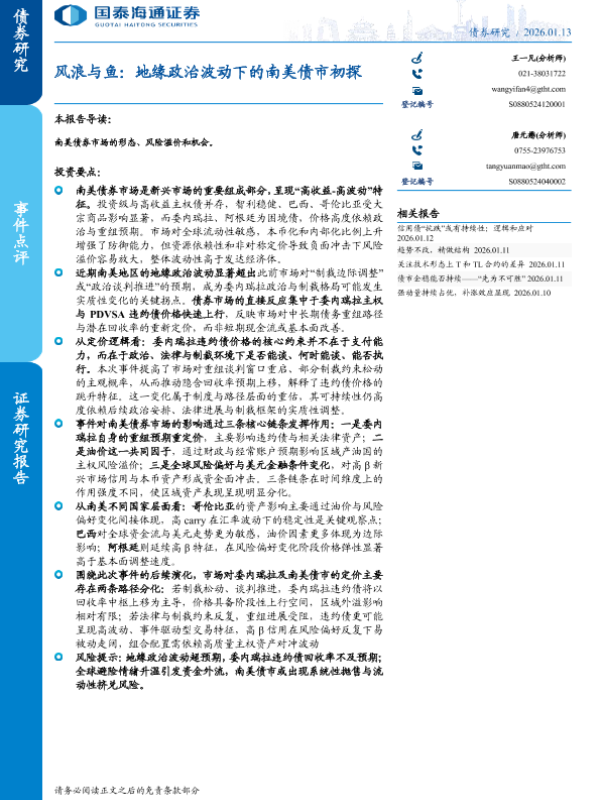 【国泰海通证券】【202601】风浪与鱼:地缘政治波动下的南美债市初探-11页 证券期货研究报告
