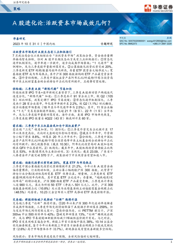 【华泰证券】【20231031】策略专题研究:A股进化论,活跃资本市场成效几何?-30页 行业研究