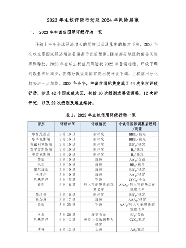 【中诚信国际】【2023】2023年主权评级行动及2024年风险展望-9页 宏观策略
