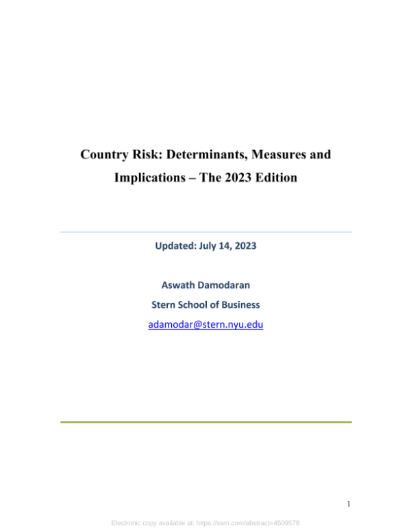 【Aswath Damodaran&Stern School of Business】【20230714】全球国家风险评估:决定因素、措施和影响——2023年版-126页 行业研究