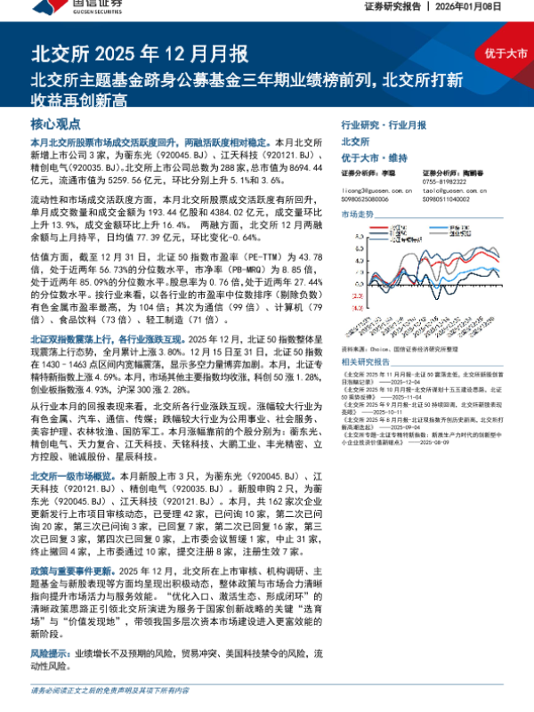 【国信证券】【202601】北交所2025年12月月报:北交所主题基金跻身公募基金三年期业绩榜前列,北交所打新收益再创新高-32页 证券期货研究报告