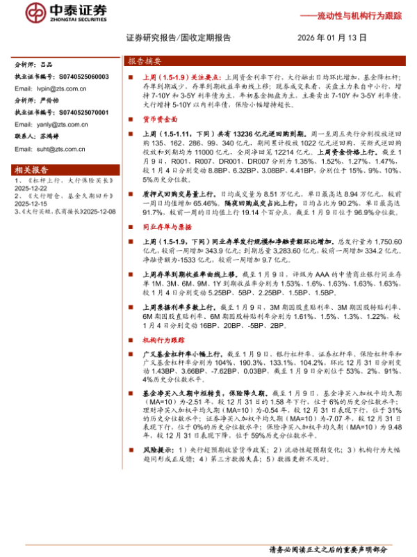 【中泰证券】【202601】流动性与机构行为跟踪:年初基金抛券、降久期-11页 证券期货研究报告