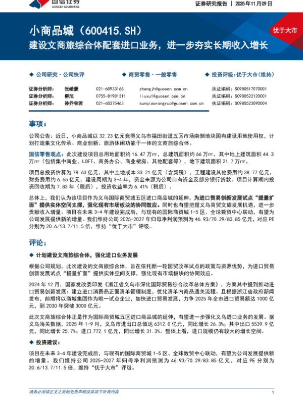 【国信证券】【202511】建设文商旅综合体配套进口业务,进一步夯实长期收入增长-5页 证券期货研究报告