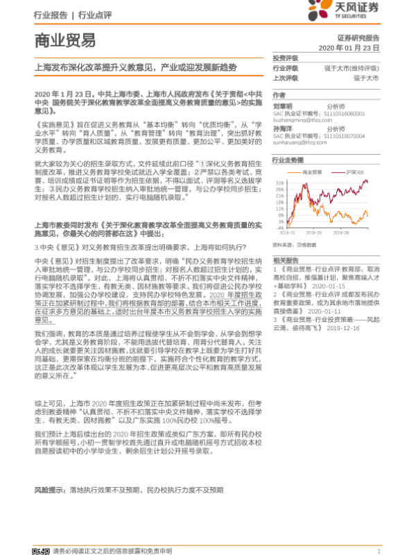 【天风证券】【20200123】上海发布深化改革提升义教意见,产业或迎发展新趋势-5页 行业研究