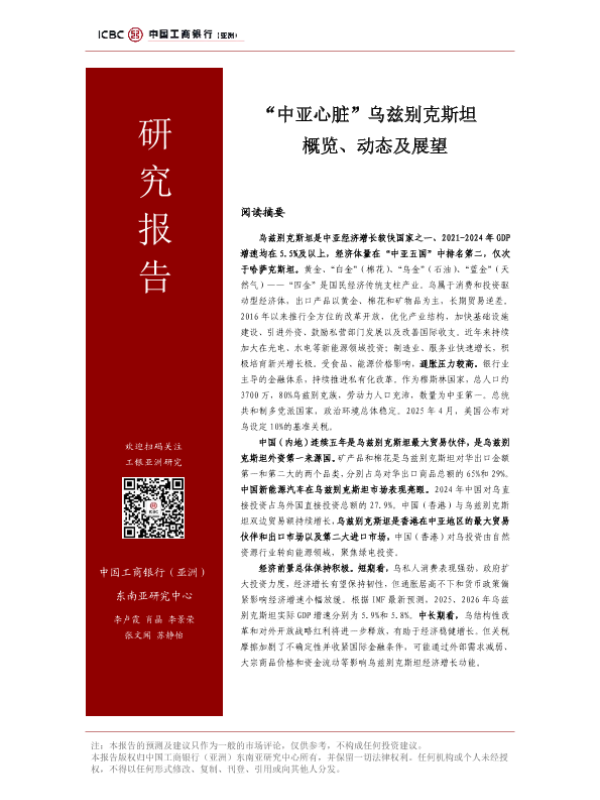 【中国工商银行(亚洲)东南亚研究中心】【2024】“中亚心脏”乌兹别克斯坦概览、动态及展望-29页 行业研究
