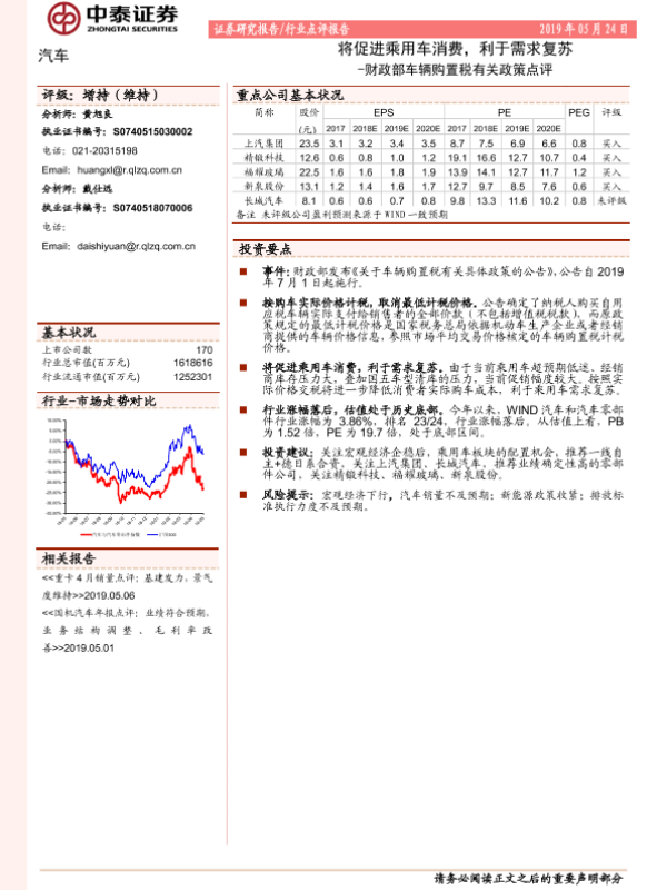 【中泰证券】【20190524】财政部车辆购置税有关政策点评:将促进乘用车消费,利于需求复苏-2页 行业研究