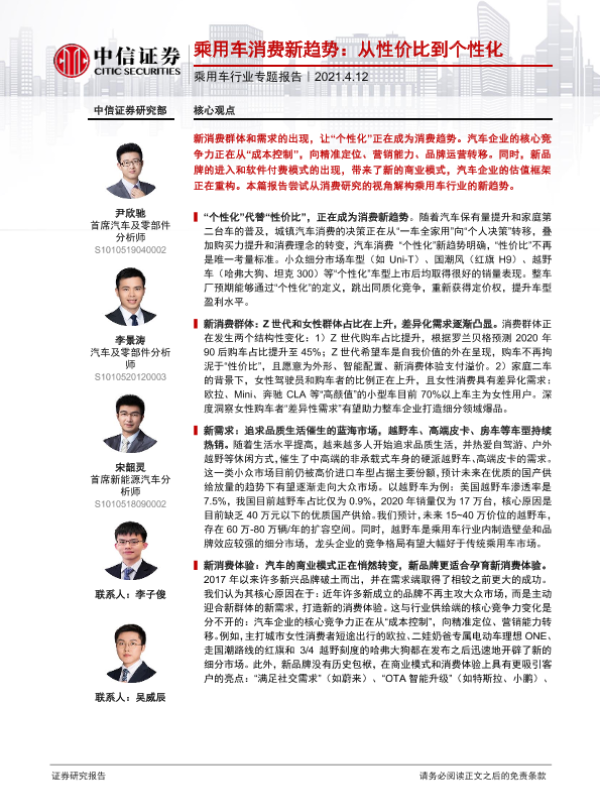 【中信证券】【20210412】乘用车消费新趋势:从性价比到个性化-44页 行业研究