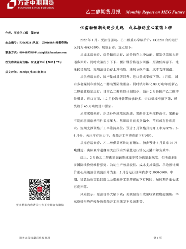 【方正中期期货】【20220130】乙二醇期货月报-20220130-22页 行业研究