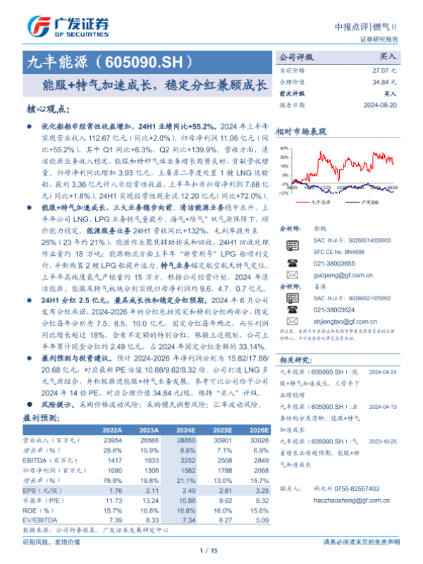 【广发证券】【20240820】九丰能源(605090)能服+特气加速成长,稳定分红兼顾成长-15页 行业研究
