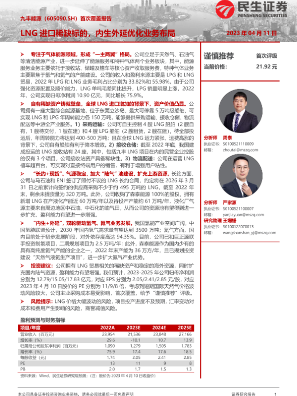 【民生证券】【20230411】20230411-民生证券-九丰能源-605090.SH-首次覆盖报告:LNG进口稀缺标的,内生外延优化业务布局-28页 行业研究