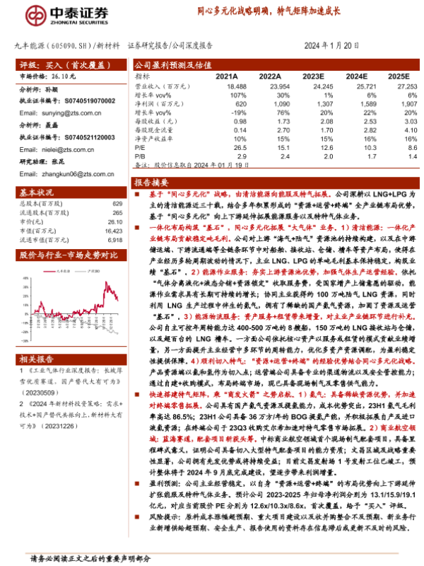 【中泰证券】【20240120】20240120-中泰证券-九丰能源-605090.SH-同心多元化战略明确,特气矩阵加速成长-27页 行业研究