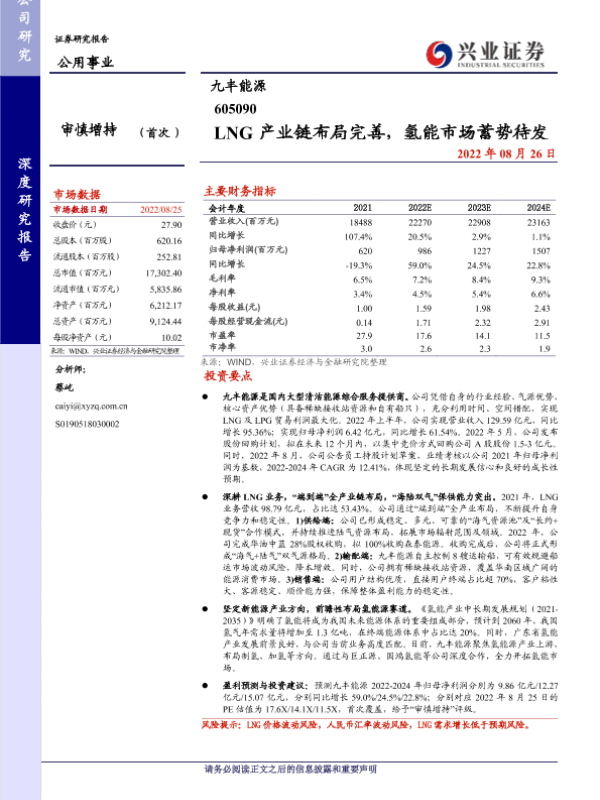 【兴业证券】【20220826】大国重器,价值标杆 LNG产业链布局完善,氢能市场蓄势待发-22页 行业研究
