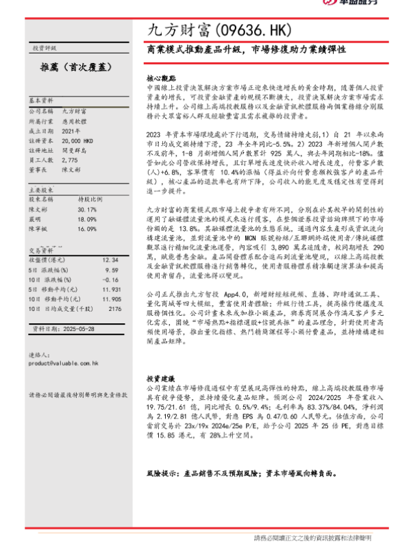 【华盛证券】【20240606】九方财富(09636.HK)商业模式推动产品升级,市场修复助力业绩弹性-12页 行业研究