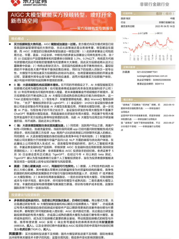 【东方证券】【20230919】非银行金融行业买方投顾转型专题报告:AIGC大模型赋能买方投顾转型,或打开全新市场空间-22页 行业研究