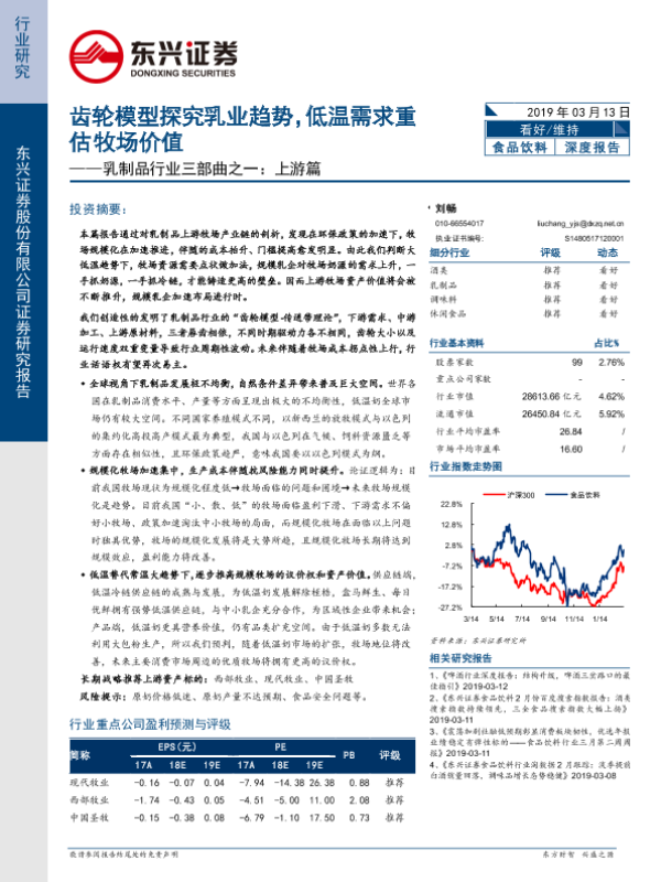 【东兴证券】【20190313】乳制品行业三部曲之一:上游篇:齿轮模型探究乳业趋势,低温需求重估牧场价值-51页 行业研究