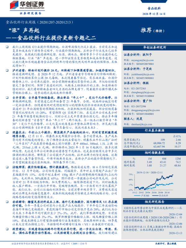【华创证券】【20201214】食品饮料行业周报:食品饮料行业提价更新专题之二-“涨”声再起-7页 行业研究