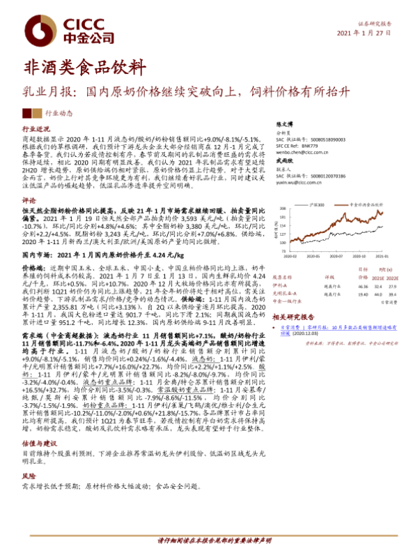 【中金公司】【20210127】20210127-中金公司-非酒类食品饮料:乳业月报:国内原奶价格继续突破向上,饲料价格有所抬升-18页 行业研究