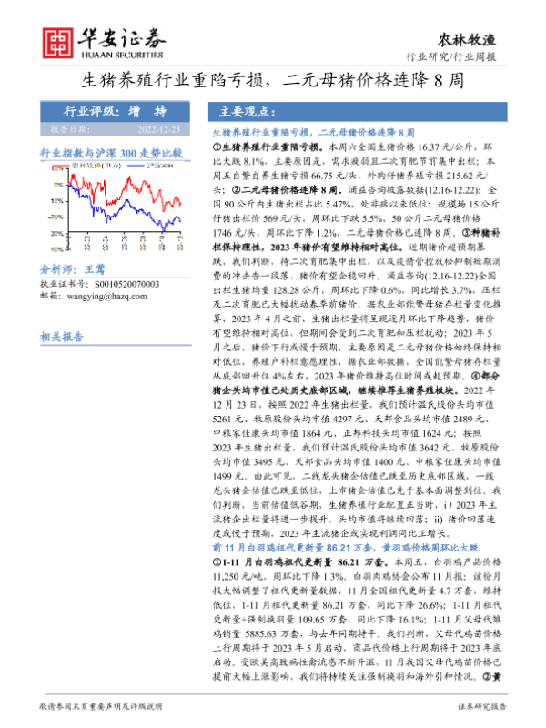 【华安证券】【20221225】20221225-华安证券-农林牧渔行业周报:生猪养殖行业重陷亏损,二元母猪价格连降8周-39页 行业研究