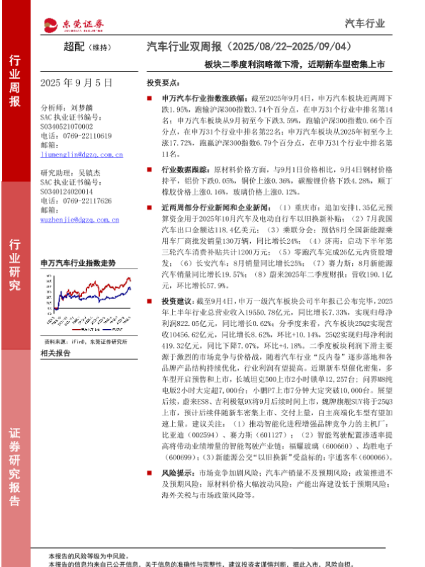 【东莞证券】【202509】汽车行业双周报(2025/08/22-2025/09/04)-11页 证券期货研究报告